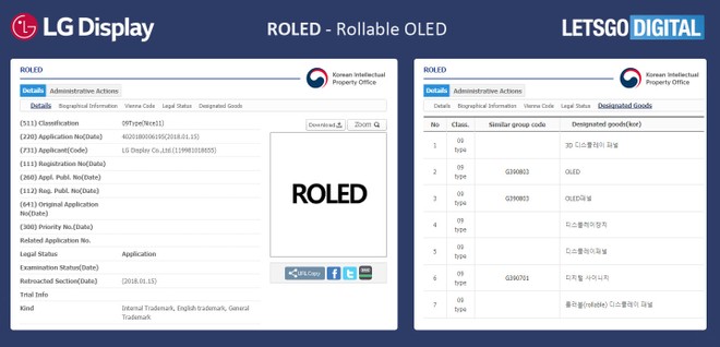 LG Display ha depositato il marchio ROLED tramite il Korea Intellectual Property Rights Information Service (KIPRIS). ROLED è l'acronimo di Rollable OLED, ovvero OLED arrotolabile. Parliamo quindi di TV come il prototipo Ultra HD da 65" mostrato al CES 2018. Il marchio è stato depositato come "Class 09", una categoria che include pannelli 3D, pannelli OLED, display, display arrotolabili, TV arrotolabili, smartphone, computer e TV.